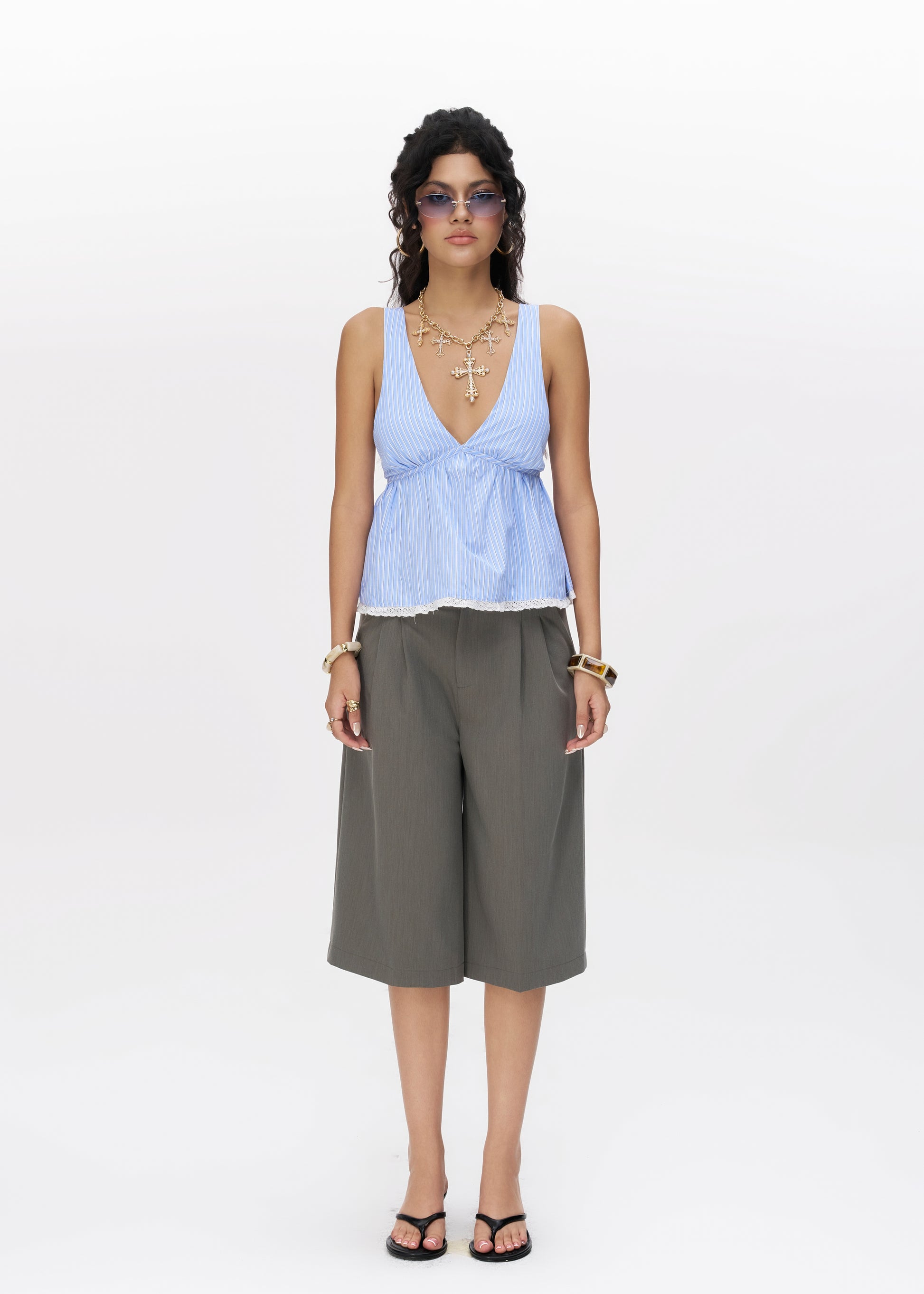 The Ivy Culotte -in Grey made from a soft tailoring cotton fabric, relaxed mid-rise fit and wide-leg silhouette, soft front pleated add subtle volume and relaxed mid-rise fit, finished with functional side pockets and back welt details